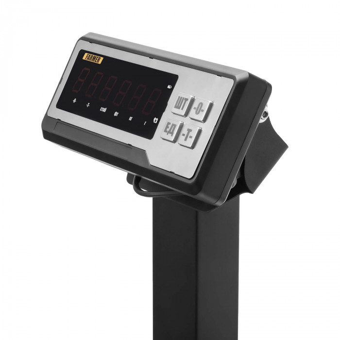Складная стойка облегчает размещение весов и экономит рабочее пространство. На ней установлен яркий LED-дисплей с контрастной индикацией, который остаётся хорошо заметным под разными углами. Кнопочная клавиатура обеспечивает простой доступ к обнулению, учёту тары, выбору единиц измерения и счётному режиму. Весы подают звуковой сигнал при перегрузке и отображают предупреждение, что помогает защитить датчик от повреждений.